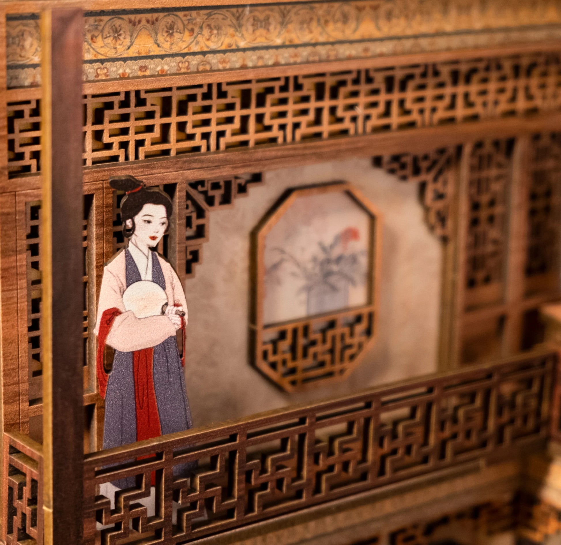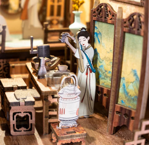 Mukavaa puuhaa itselle tai lahjaksi. Elegant Song Book Nook paketti sisältää tarvikkeet itämaista huonetta esittävän minimaailman rakentamiseen. Paketti sisältää monta kivaa osaa. Suurin osa osista on valmistettu ohuesta laserleikatusta puukuitulevystä.