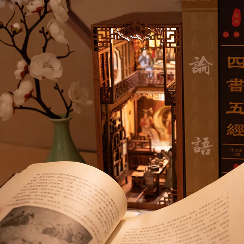 Book Nookin rakentamisessa riittää monenlaista pientä näperreltävää pitkäksi aikaa. Sorminäppäryyttä ja keskittymiskykyä vaativa kokoaminen vie ajatukset pois mieltä painavista asioista ja antaa pienen rentouttavan lepohetken arjen keskelle.