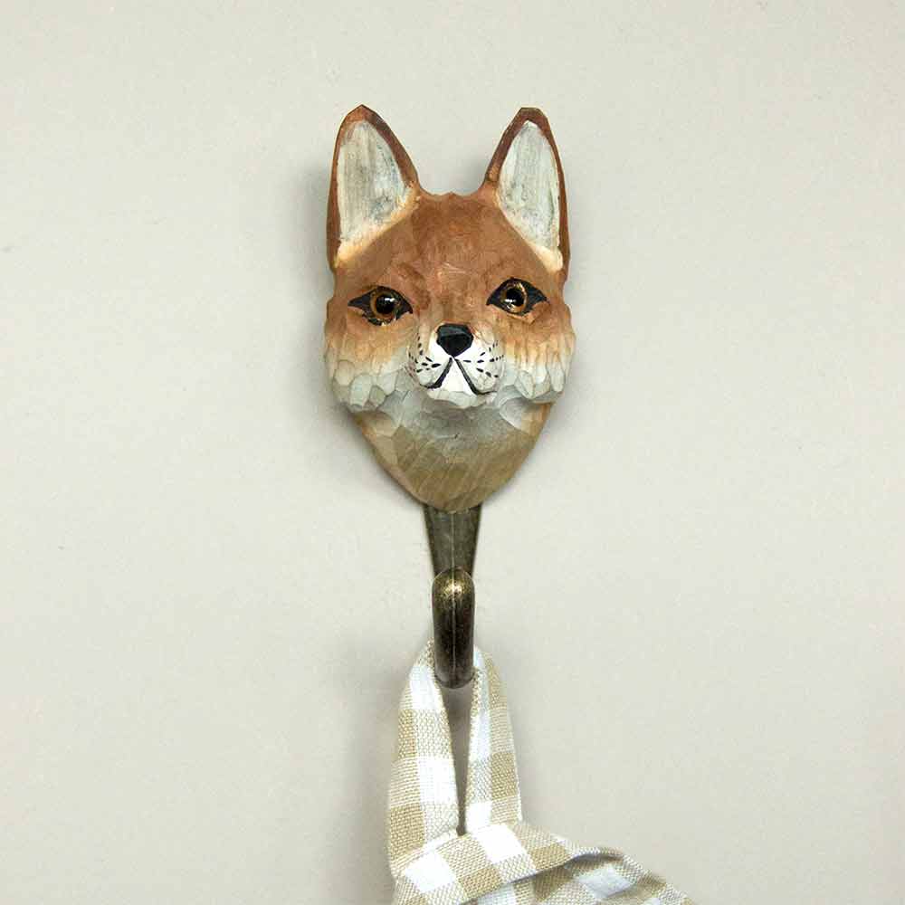Käsin veistetty seinäkoukku Kettu