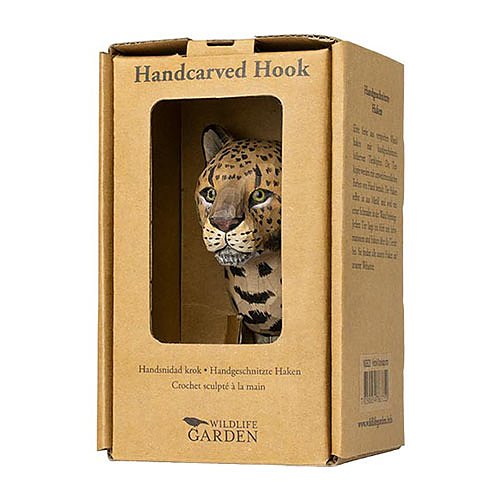 Leopardi seinäkoukku on veistetty käsin puusta. Leopardi on maalattu myrkyttömillä ympäristöystävällisillä maaleilla. Naulakoissa näkyy kaunis käsityön jälki ja jokainen kappale onkin viehättävästi hieman erilainen. Eri eläinaiheiset naulakot sopivat myös hyvin yhteen. Pakattu ruskeaan edestä avoimeen lahjalaatikkoon. Kiinnitetään yhdellä ruuvilla. Ei sisällä kiinnitystarvikkeita.
