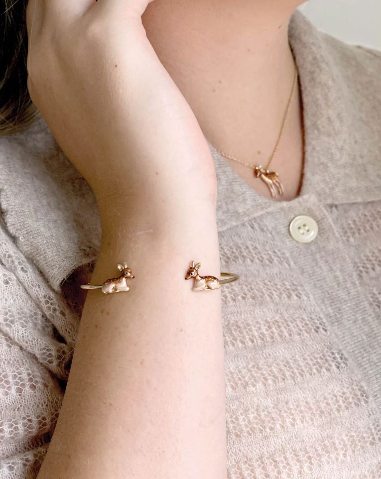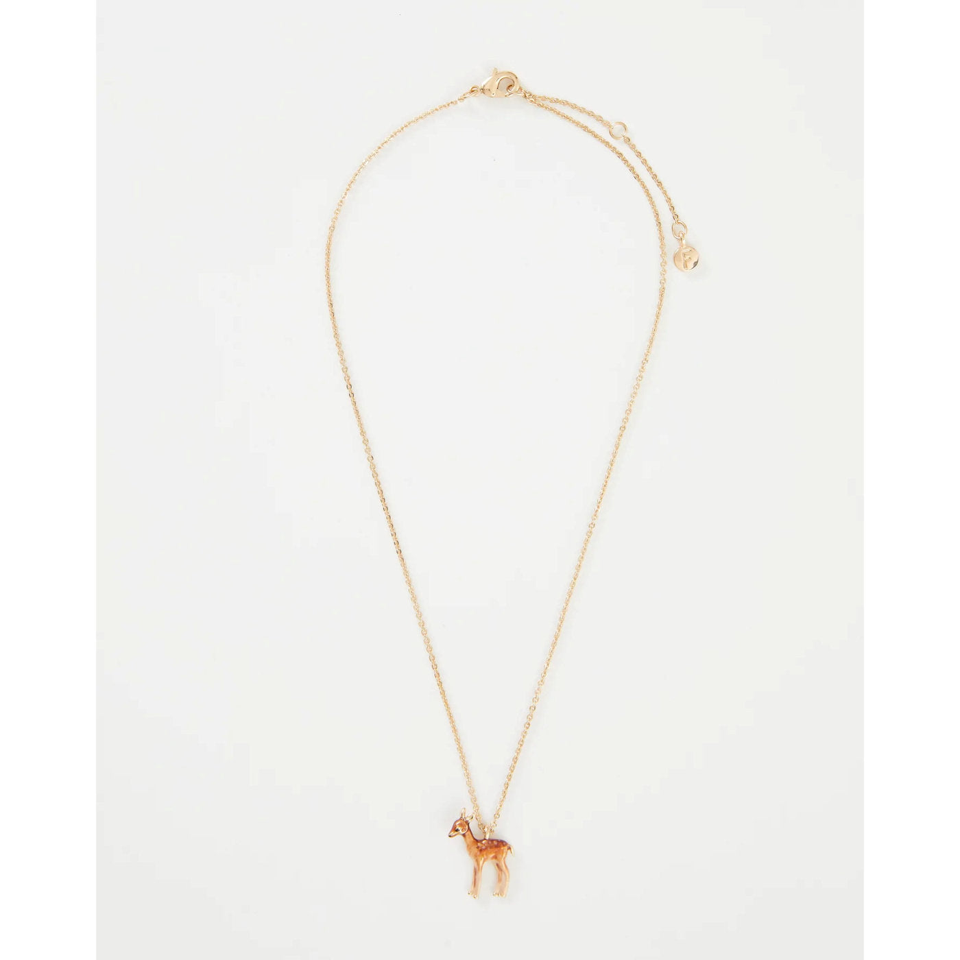 Suloinen bambi kaulakoru. Riipus ja ketju on valmistettu kullalla päällystetystä metallista. Bambi on maalattu käsin, joten jokainen koru on viehättävästi hieman eri näköinen oma yksilönsä. Fable England korut tuovat asuusi tyylikkäällä ja hauskalla tavalla englantilaista menneiden aikojen tunnelmaa.