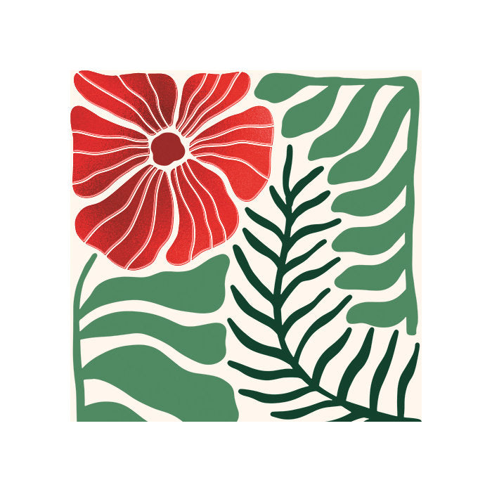 Punainen kukka pieni kaksiosainen kortti 7.5 x 7.5 cm
