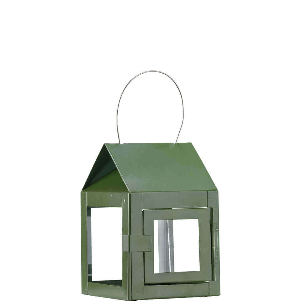 Soma pieni oliivinvihreä ripustettava kynttilälyhty. Lyhdyssä voi polttaa tuikkukynttilää tai vaikkapa led-valosarjaa.